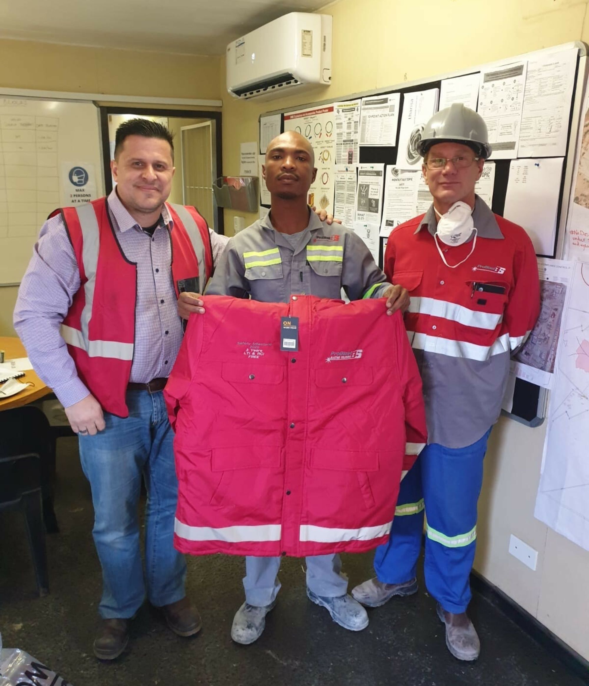 The two sites received their 3-year LTI (Loss Time Injury) and (RCI) Reportable Case Injury free reward (one site worked a total of 7 561 shifts and 64 814 hours to achieve their milestone and the other worked a total of 24 303 shifts and 198 587 hours to achieve their milestone).